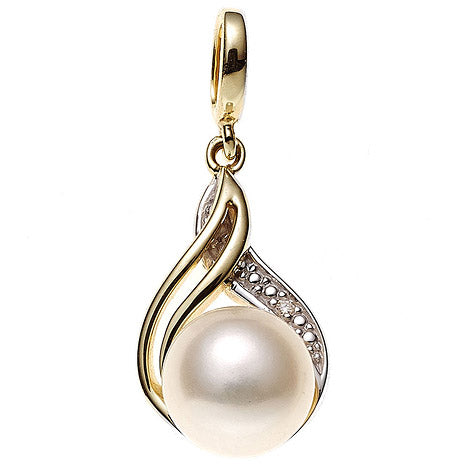 Anhänger 585 Gold Gelbgold 1 Süßwasser Perle 1 Diamant Brillant Perlenanhänger
