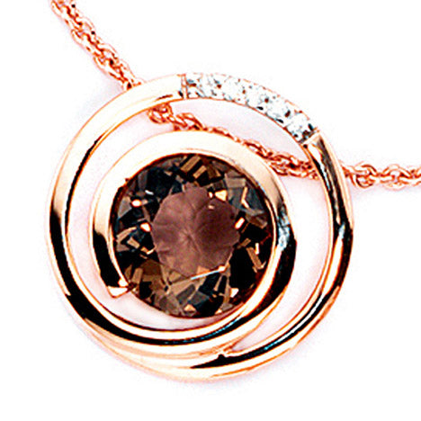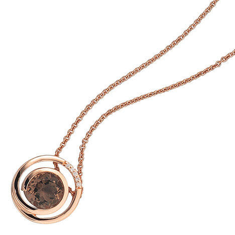 Anhänger 585 Gold Rotgold 5 Diamanten Brillanten 0 035ct. 1 Rauchquarz braun