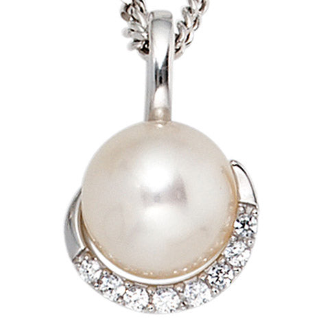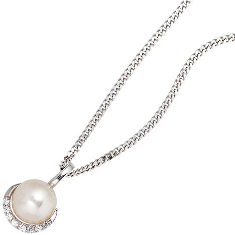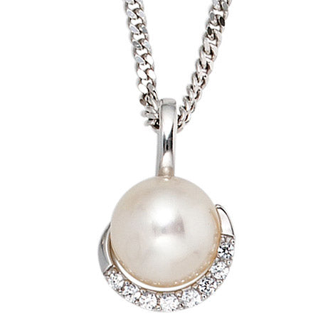 Anhänger 585 Gold Weißgold 1 Süßwasser Perle 8 Diamanten Perlenanhänger