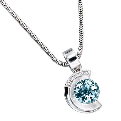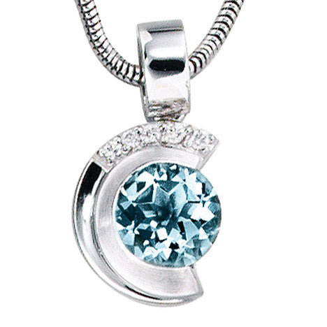 Anhänger 585 Gold Weißgold mattiert 5 Diamanten Brillanten 1 Aquamarin blau