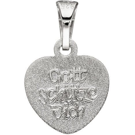Anhänger Herz Schutzengel 925 Silber Rückseite mit Prägung Gott schütze Dich