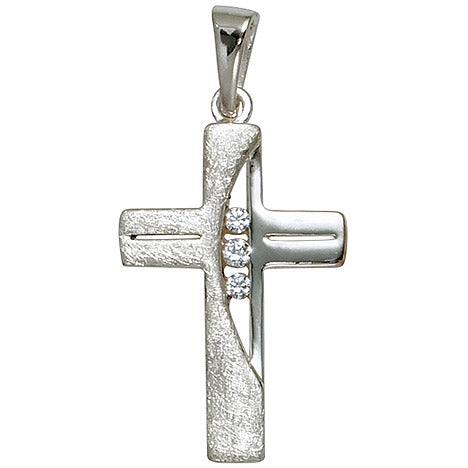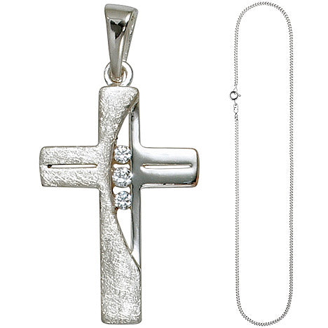 Anhänger Kreuz 925 Silber 3 Zirkonia Kreuzanhänger Silberkreuz mit Kette 50 cm