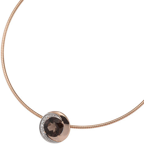 Anhänger rund 585 Rotgold bicolor 3 Diamanten Brillanten 1 Rauchquarz braun