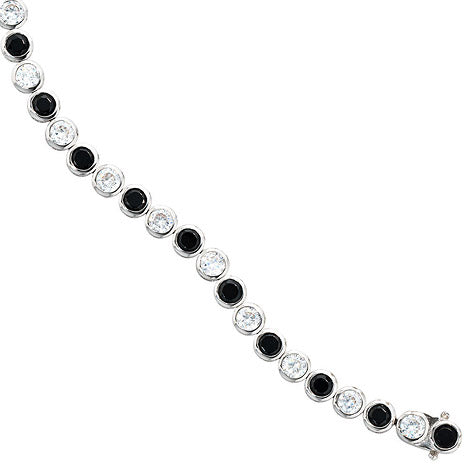 Armband 925 Silber 19 cm mit Zirkonia schwarz weiß Silberarmband Kastenschloss