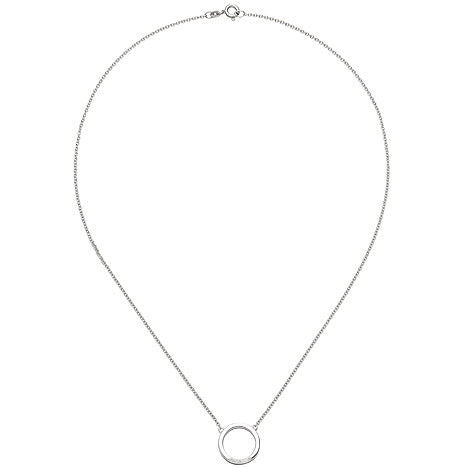Collier / Ankerkette mit festem Anhänger aus 14 Karat (585) Weißgold mit 7 Diamant-Brillanten, 0,04 ct., W/SI wesselton (weiß), SI=(kleine, mit bloßem Auge nicht erkennbare natürliche Einschlüsse), Feinbearbeitung gut, mit Federringverschluss, Länge ca. 43 cm, Durchmesser ca. 15 mm, Kettenstärke ca. 1,5 mm x 1,5 mm, Gewicht ca. 4,6 g * Bitte beachten Sie die Maße! Auf dem Foto kann der Artikel größer wirken *(Colfem) Eine Kette komplett mit schmückenden Elementen oder festen Anhänger daran nennt man Collier. Früher festlichen Anlässen vorbehalten, ist dieses Collier perfekt alltagstauglich. Die Farbe Silber ist weltweit die beliebteste Schmuckfarbe. Die schlichte Eleganz macht silberfarbigen Schmuck zum modischen Allrounder. Silber passt immer! Gold 585, auch 14 Karat Gold genannt, ist in unseren Breiten die gängigste Wahl, wenn man Echtgold Schmuck sein eigen nennen möchte. Da reines Feingold 999 zu weich für die Schmuckverarbeitung ist, wird es mit anderen Metallen legiert. Bei 585 Gold besteht also die Legierung zu über die Hälte aus reinem Gold. Die Magie echter Schmucksteine verzaubert die Menschen schon immer. Schmuckstücke verziert mit echten Steinen sind etwas besonderes. Viele verbinden mit echten Steinen auch ganz besondere Bedeutungen. Wie keine andere Farbe steht Weiß für schlichte Eleganz. Weiß passt zu allem und sollte daher in keiner Schmuckschatulle fehlen.