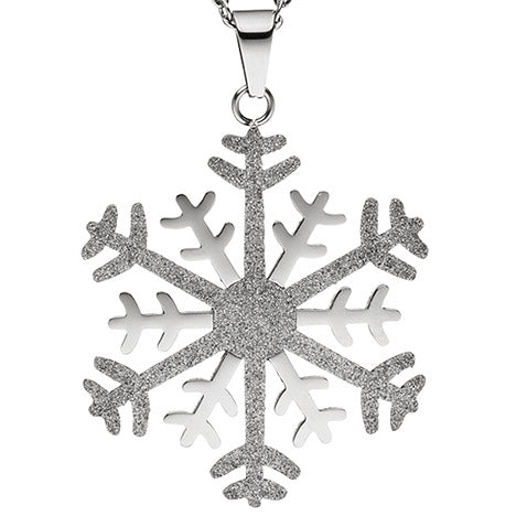Collier Kette mit Anhänger Schneeflocke Edelstahl bicolor Glitzer-Effekt 42 cm