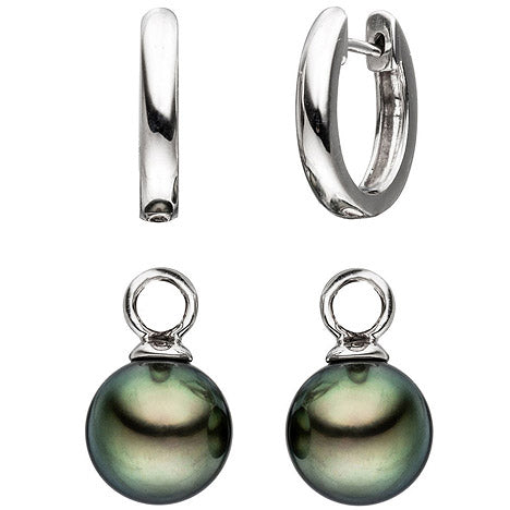 Creolen 585 Gold Weißgold 2 Tahiti Perlen Ohrringe Perlenohrringe