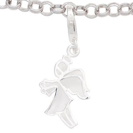 Einhänger Schutzengel , 925/- Sterlingsilber, Karabinerverschluss (ca. 0,9 g) (ohne Armband), Höhe ca. 20 mm, Breite ca. 12,2 mm, Tiefe ca. 1,1 mm(Colfem) Charms, auch Jou Jou genannt, sind bei Sammlern total beliebt. Jeder Anhänger steht für ein Symbol oder Erinnerungen. Dieser Charmanhänger wird mit dem kleinen Verschluß schnell und einfach in ein grobgliedriges Kettchen, Perlenketten oder Ketten mit s.g. Charmringen eingehängt. Die Farbe Silber ist weltweit die beliebteste Schmuckfarbe. Die schlichte Eleganz macht silberfarbigen Schmuck zum modischen Allrounder. Silber passt immer! 925 Sterling Silber ist das Schmuckmaterial schlechthin. Unempfindlich, günstig und dennoch edel wird es auch in Zukunft die Pole-Position der beliebtesten Materialen für sich beanspruchen. Seit Gedenkzeiten sind Bedeutung und Symbolik für die Völker dieser Erde sehr wichtig. Schmuck mit Bedeutung erlebt aktuell ein besonderes Revival.