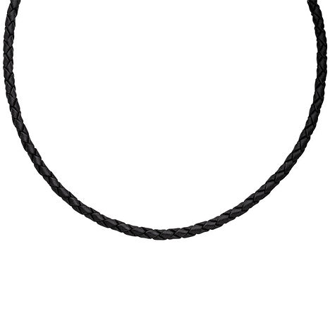 Lederkette, schwarz, ca. 45 cm lang, Karabinerverschluss 925/- Sterlingsilber (ca. 4,9 g), Durchmesser ca. 3,8 mm(Colmas) Die klassische Halskette wird gerne solo getragen oder nimmt den Lieblingsanhänger auf. Schlicht und praktisch das Basis Accessoire für einen geschmückten Hals. Die Farbe Silber ist weltweit die beliebteste Schmuckfarbe. Die schlichte Eleganz macht silberfarbigen Schmuck zum modischen Allrounder. Silber passt immer! Schmuck aus Leder ist seit jeher bei vielen Völkern dieser Erde beliebt. Leder verkörpert einen maskulinen, zielstrebigen Lifestyle. Lediglich Wassernixen greifen besser zu einem anderen Material, denn Lederschmuck und Wasser, das geht nicht lange gut.