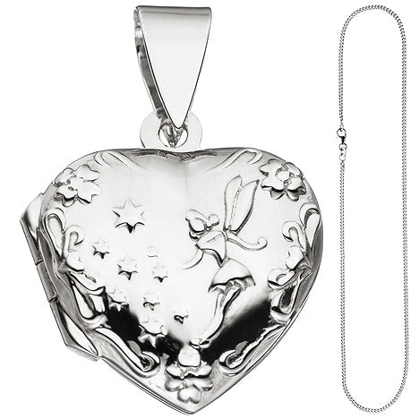 Medaillon Herz Anhänger zum Öffnen für 2 Fotos 925 Silber mit Kette 42 cm
