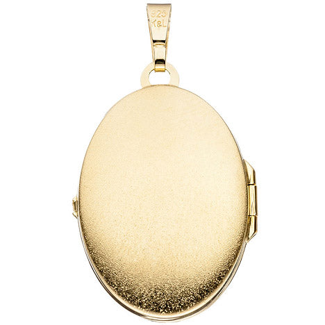 Medaillon oval Blumen 925 Sterling Silber gold vergoldet Anhänger zum Öffnen