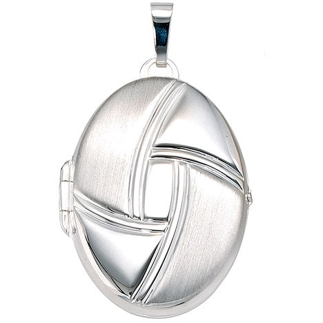Medaillon oval für 2 Fotos 925 Sterling Silber matt Anhänger zum Öffnen