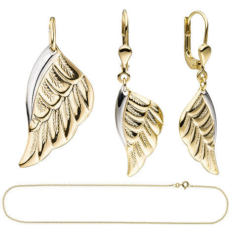 Schmuck-Set Flügel Engelsflügel 333 Gold Gelbgold bicolor mit Kette 42 cm