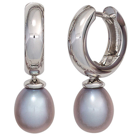 Creolen 585 Gold Weißgold 2 Süßwasser Perlen Ohrringe Perlenohrringe