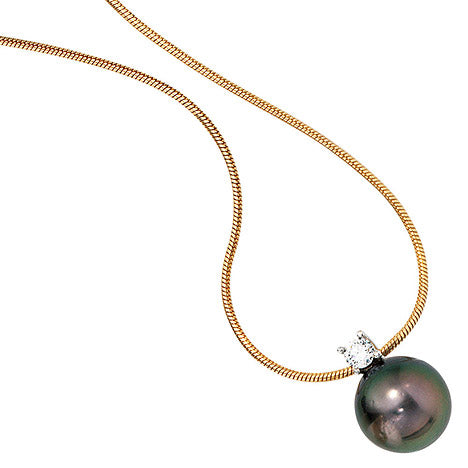 Collier Kette mit Anhänger 585 Gold 1 Tahiti Perle 1 Diamant Brilllant 42 cm