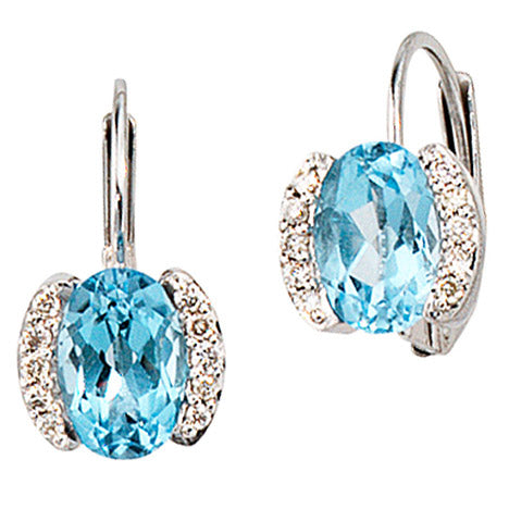 Boutons 585 Gold Weißgold 20 Diamanten 2 Blautopase blau Ohrringe Ohrhänger