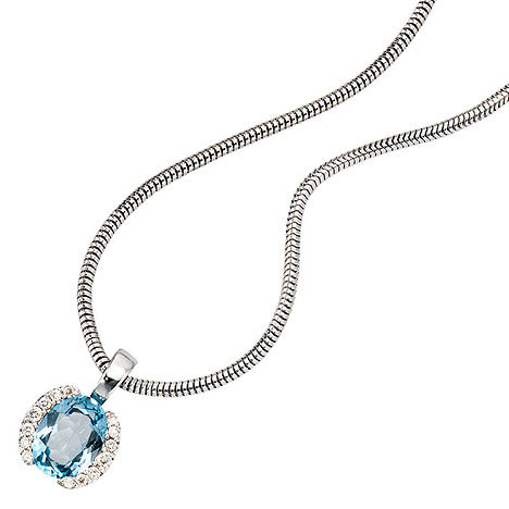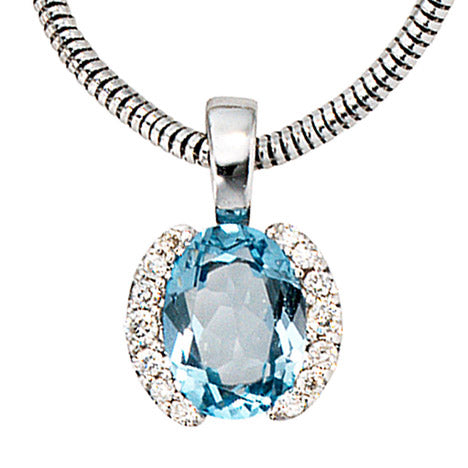 Anhänger 585 Gold Weißgold 14 Diamanten Brillanten 1 Blautopas blau Goldanhänger