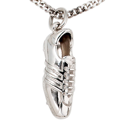 Anhänger Fußballschuh , 925/- Sterlingsilber, rhodiniert (ca. 3,6 g) (ohne Kette), Höhe ca. 21 mm, Breite ca. 8 mm, Tiefe ca. 6,3 mm(Colmas) Dieser Kettenanhänger wird einem lange Freude bereiten. Ohne großen Aufwand lässt er sich an der Lieblingskette tragen und gerne auch mal mit weiteren Anhängern kombinieren. Passende Ketten finden Sie in unserer Kategorie "Ketten & Anhänger", in welcher Sie dann auch Filtern bzw. gezielte Suchen durchführen können. Die Farbe Silber ist weltweit die beliebteste Schmuckfarbe. Die schlichte Eleganz macht silberfarbigen Schmuck zum modischen Allrounder. Silber passt immer! 925 Sterling Silber ist das Schmuckmaterial schlechthin. Unempfindlich, günstig und dennoch edel wird es auch in Zukunft die Pole-Position der beliebtesten Materialen für sich beanspruchen.