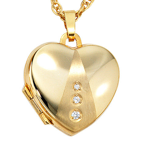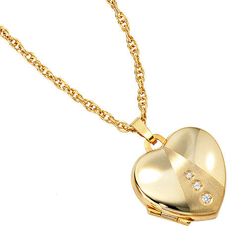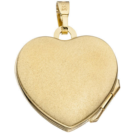 Medaillon Herz 333 Gold Gelbgold mattiert 3 Zirkonia Anhänger zum Öffnen