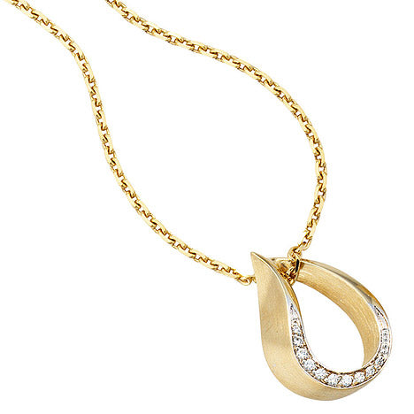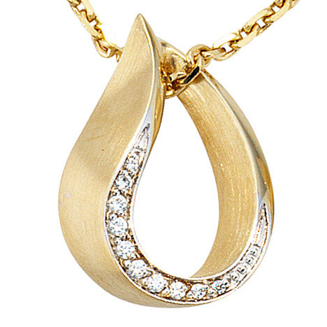 Anhänger Tropfen 585 Gold Gelbgold bicolor teilmatt 10 Diamanten Brillanten