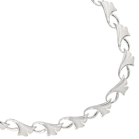 Collier Ginko , 925/- Sterlingsilber, teilmattiert, ca. 47 cm lang, auf 45 cm verkürzbar, Karabinerverschluss, Handarbeit (ca. 50,4 g), Breite ca. 12,7 mm, Tiefe ca. 2,4 mm(Colfem) Eine Kette komplett mit schmückenden Elementen oder festen Anhänger daran nennt man Collier. Früher festlichen Anlässen vorbehalten, ist dieses Collier perfekt alltagstauglich. Die Farbe Silber ist weltweit die beliebteste Schmuckfarbe. Die schlichte Eleganz macht silberfarbigen Schmuck zum modischen Allrounder. Silber passt immer! 925 Sterling Silber ist das Schmuckmaterial schlechthin. Unempfindlich, günstig und dennoch edel wird es auch in Zukunft die Pole-Position der beliebtesten Materialen für sich beanspruchen.