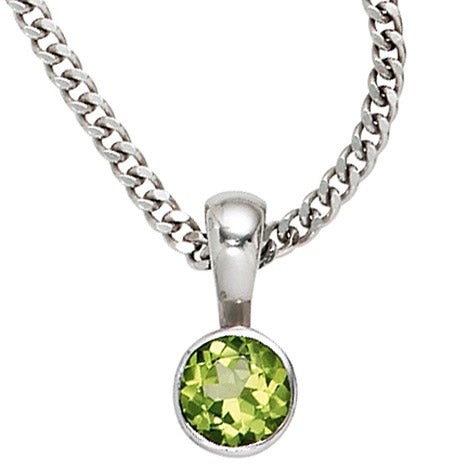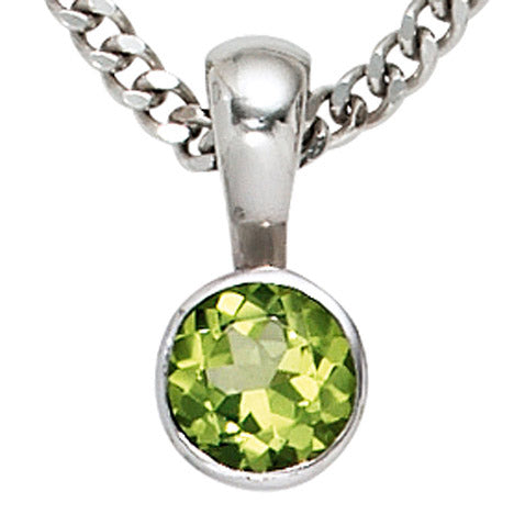 Anhänger rund 925 Sterling Silber rhodiniert 1 Peridot grün