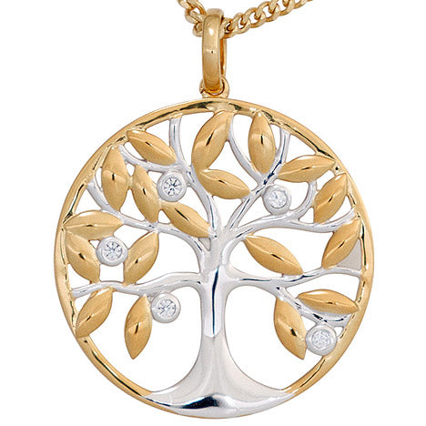 Anhänger Baum 585 Gold Gelbgold bicolor 5 Diamanten Brillanten Goldanhänger