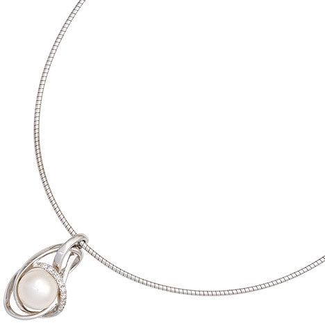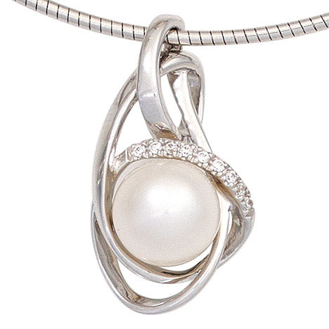 Anhänger 585 Gold Weißgold 1 Süßwasser Perle 9 Diamanten Perlenanhänger