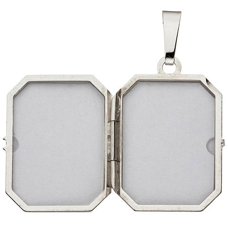 Achteckiges Medaillon für bis zu 2 Fotos aus 925 Sterlingsilber, rhodiniert und teileismatt, Höhe ca. 24 mm, Breite ca. 17,3 mm, Tiefe ca. 5 mm, Innenmaße der Öse ca. 6,4 mm x 2,4 mm, Gewicht ca. 2,9 g * Der Artikel ist anlaufgeschützt (rhodiniert) * Bitte beachten Sie die Maße! Auf dem Foto kann der Artikel größer wirken *(Colfem) Dieser Kettenanhänger wird einem lange Freude bereiten. Ohne großen Aufwand lässt er sich an der Lieblingskette tragen und gerne auch mal mit weiteren Anhängern kombinieren. Passende Ketten finden Sie in unserer Kategorie "Ketten & Anhänger", in welcher Sie dann auch Filtern bzw. gezielte Suchen durchführen können. Die Farbe Silber ist weltweit die beliebteste Schmuckfarbe. Die schlichte Eleganz macht silberfarbigen Schmuck zum modischen Allrounder. Silber passt immer! 925 Sterling Silber ist das Schmuckmaterial schlechthin. Unempfindlich, günstig und dennoch edel wird es auch in Zukunft die Pole-Position der beliebtesten Materialen für sich beanspruchen. Die Liebe ist so alt wie die Menschheit selbst. Und was könnte schöner sein als Schmuck, der zwei sich liebende Menschen verbindet? Mit Partnerschmuck bringt man das auf wunderschöne Weise zum Ausdruck.