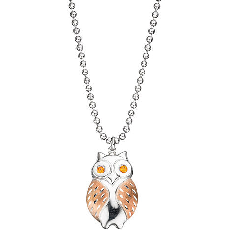 Anhänger Eule 925 Sterling Silber rotgold vergoldet bicolor 2 Zirkonia orange