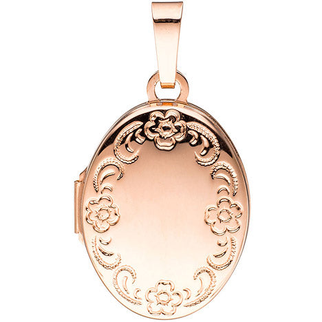 Medaillon oval Blumen Muster 925 Silber rotgold vergoldet zum Öffnen für 2 Fotos