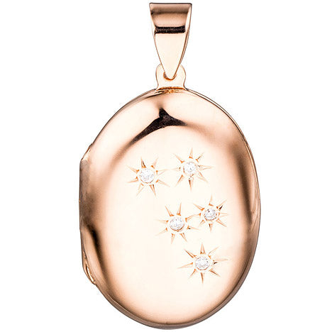 Medaillon oval für 2 Fotos 925 Silber rotgold vergoldet 5 Zirkonia zum Öffnen