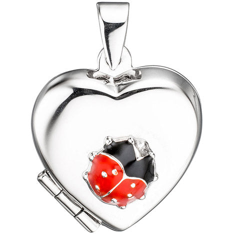 Kinder Medaillon Herz mit Marienkäfer 925 Sterling Silber zum Öffnen für 2 Fotos