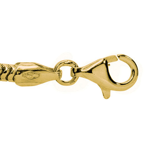 Schlangenkette aus 14 Karat (585) Gelbgold mit Karabinerverschluss, Länge ca. 42 cm, Kettenstärke ca. 2,4 mm x 2,4 mm, Gewicht ca. 12,1 g * Bitte beachten Sie die Maße! Auf dem Foto kann der Artikel größer wirken *(Colfem) Die klassische Halskette wird gerne solo getragen oder nimmt den Lieblingsanhänger auf. Schlicht und praktisch das Basis Accessoire für einen geschmückten Hals. Die Farbe Gold ist seit jeher der Klassiker für Schmuck. Unvergleichlich edel steht Gold wie keine andere Farbe für Wärme und Begierde. Gold 585, auch 14 Karat Gold genannt, ist in unseren Breiten die gängigste Wahl, wenn man Echtgold Schmuck sein eigen nennen möchte. Da reines Feingold 999 zu weich für die Schmuckverarbeitung ist, wird es mit anderen Metallen legiert. Bei 585 Gold besteht also die Legierung zu über die Hälte aus reinem Gold.