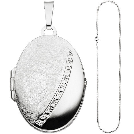 Medaillon oval Anhänger zum Öffnen für 2 Fotos 925 Silber mit Kette 50 cm