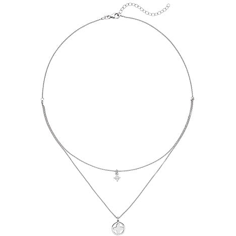 Collier / 2-reihige Halskette in Rund-Ankerkettengliederung Blume , aus 925 Sterlingsilber, rhodiniert, mit 5 Zirkonia und Karabinerverschluss, Länge ca. 44 cm, auf 39 cm verkürzbar, Kettenstärke ca. 1,1 mm x 1,1 mm, Gewicht ca. 3,1 g * Der Artikel ist anlaufgeschützt (rhodiniert) * Bitte beachten Sie die Maße! Auf dem Foto kann der Artikel größer wirken *(Colfem) Eine Kette komplett mit schmückenden Elementen oder festen Anhänger daran nennt man Collier. Früher festlichen Anlässen vorbehalten, ist dieses Collier perfekt alltagstauglich. Die Farbe Silber ist weltweit die beliebteste Schmuckfarbe. Die schlichte Eleganz macht silberfarbigen Schmuck zum modischen Allrounder. Silber passt immer! 925 Sterling Silber ist das Schmuckmaterial schlechthin. Unempfindlich, günstig und dennoch edel wird es auch in Zukunft die Pole-Position der beliebtesten Materialen für sich beanspruchen. Es ist kein Nachteil, wenn man von von synthetischen Steinen spricht. Nicht selten haben synthetische Steine sogar Vorteile gegenüber ihren Vorbildern aus der Natur und schonen dabei natürliche Resourcen und den Geldbeutel. Wie keine andere Farbe steht Weiß für schlichte Eleganz. Weiß passt zu allem und sollte daher in keiner Schmuckschatulle fehlen.